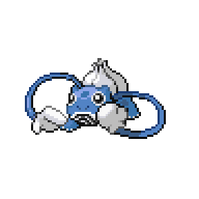 Bulbawhirl floats on its belly on the surface of lakes. It can grab prey swimming by with its vines and hypnotize it with its belly pattern.