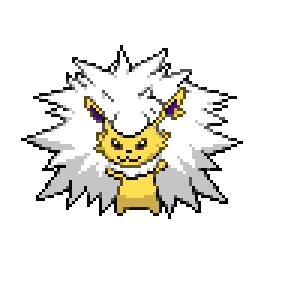 Its cells generate weak power that is amplified by its fur's static electricity to drop thunderbolts. These Pokémon sneak through gaps into houses and cause all sorts of mischief
