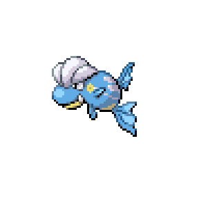 A Remoraid uses its abdominal muscles to forcefully expel swallowed water, then shoot down flying prey. It launches head-butts with its ironlike skull