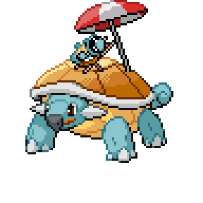 Small Pokémon occasionally gather on its unmoving back to begin building their nests. Its rounded shape and the grooves on its surface minimize resistance in water, enabling Squirtle to swim at high speeds